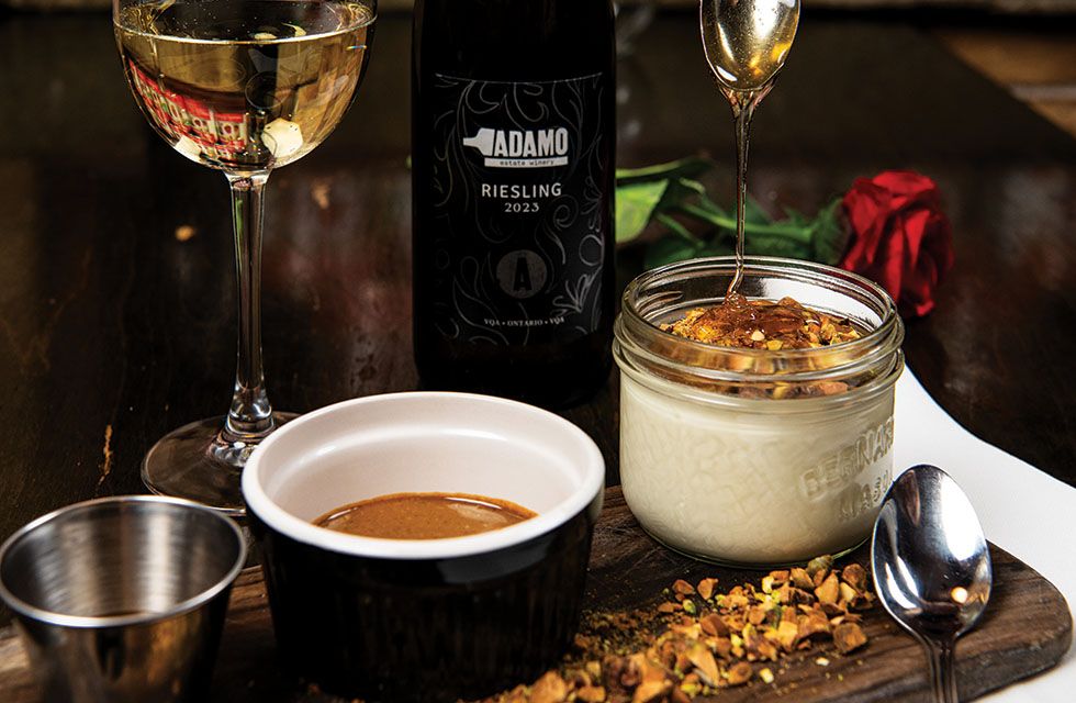 An off-dry Riesling with vibrant acidity and expressive notes of citrus, apricot, green apple and honey. Its balanced sweetness complements the delicate vanilla cream, while the bright acidity cuts through the richness and enhances the nutty pistachio finish. Elegant enough to finish the meal— and refreshing enough to linger in the glass long after dessert.