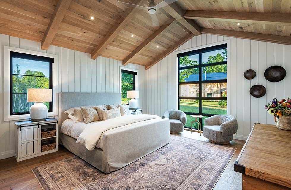 From the bedrooms to the great room, the entire home is thoughtfully designed for aesthetic appeal, country comfort, excellent flow and functionality, with everything where it should be. A reflection of the couple’s tastes and laid-back lifestyle, its design elements are, as they describe them, a carefully chosen mix of old and new.