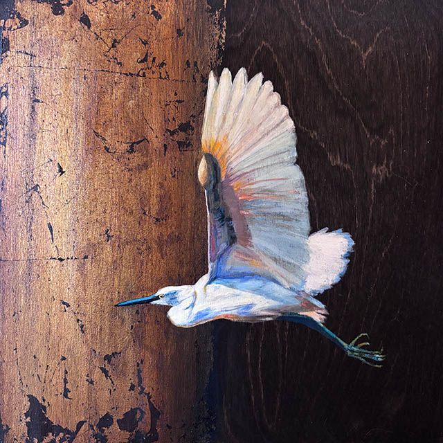 Deborah’s signature process of combining textured backgrounds and Old World finishes alongside her detailed painting style depicts a bit of a conundrum, a vulnerability, so to speak, that reflects the resiliency of nature. Her wish is to inform and inspire the viewer to slow down and reflect on nature and it importance. Joyfully retreating into her work, Deborah describes herself as being somewhat introverted, although she definitely enjoys being around people. Her laughter is infectious. Painting is her way of contributing, and she hopes that her work will impact awareness. “If one of my paintings makes someone think or causes even one person to care, then I’ve done my part.”