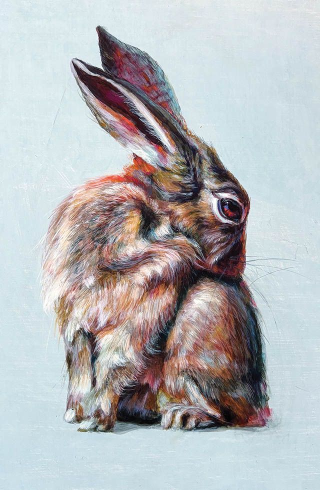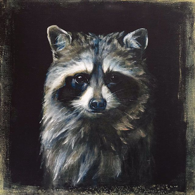 Her process results in a final image that is somewhat haunting. Each critter has a definite attitude. A personality. Often, collectors of Deborah’s work actually give names to the animals and birds in her paintings. Her ability to capture distinct personality traits of animal subjects has resulted in a series of privately commissioned pet portraits. “Carefully chosen colour palettes, strong light sources, and design are critically important to help create my narratives.”