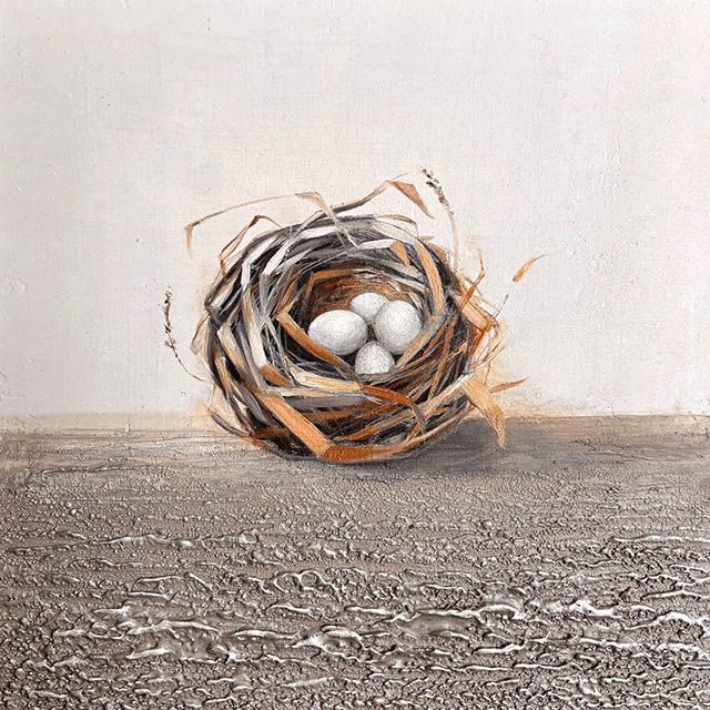 Shoreline Nest, encaustic and oil. 12″ by 12″