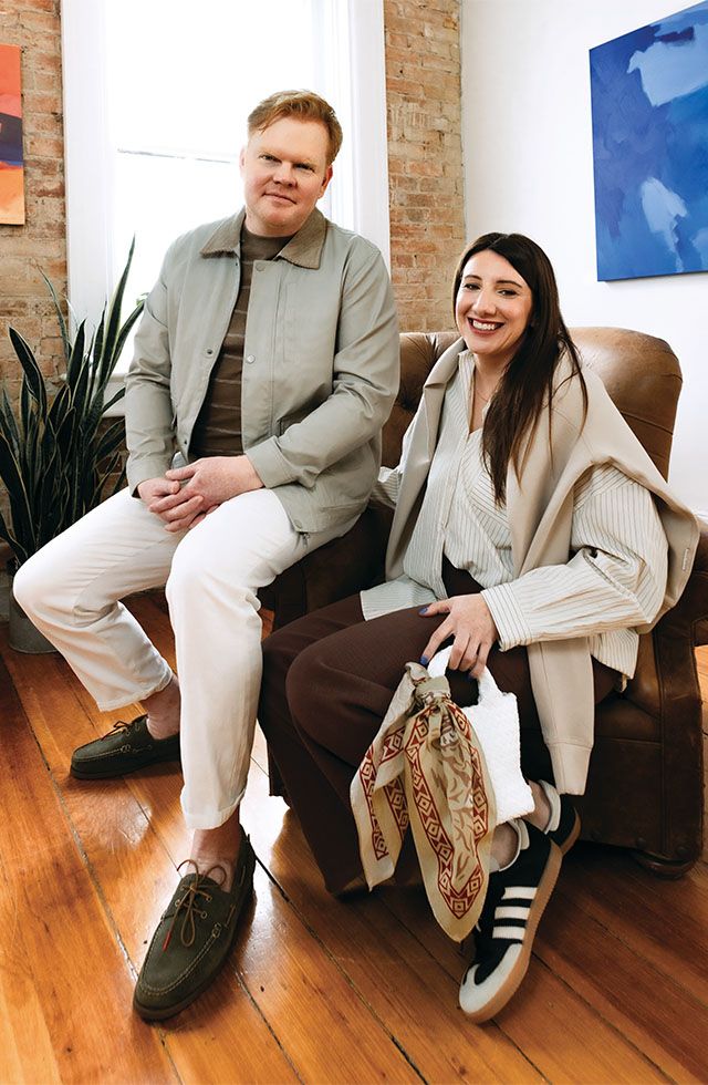 Clothing, bag, glasses, hat and Kayla’s shoes from Tigs, Thornbury. Models Kayla van Zon and Alex McCullough. Location Nōma Gallery, Collingwood.