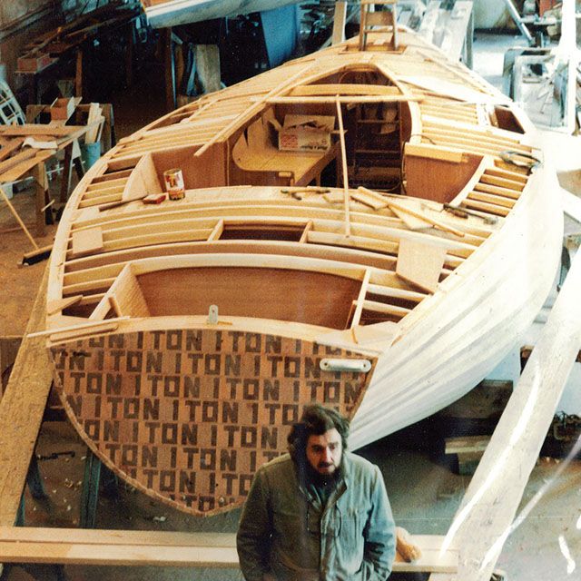 Vanderstadt and McGruer’s line of Siren 17’s and Sirius 28’s (Left). Vic Carpenter in his workshop (Right).