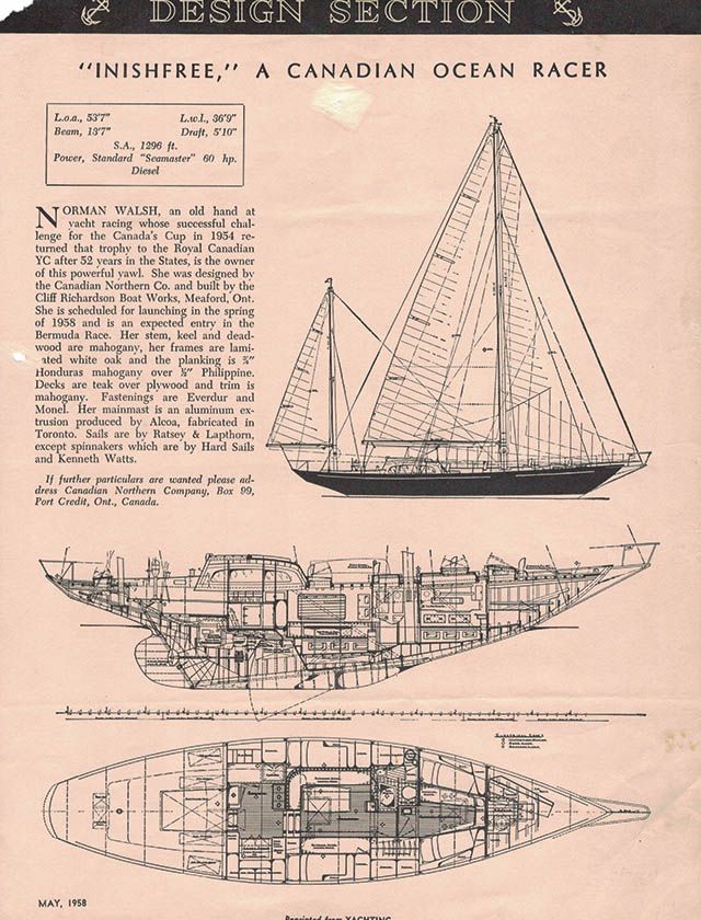 Notably, in the late 1950s Richardson was approached by George Cuthbertson (later of C&C Yachts) to finish Innishfree. Built in Meaford in 1958, the ocean racer became world-class, winning international trophies and announcing Canada as a key player in the racing sailboat business. Around 1980 the company’s focus shifted from building to focus on boat maintenance and storage. Today Cliff’s grandson, David Richardson, is the company’s president.
