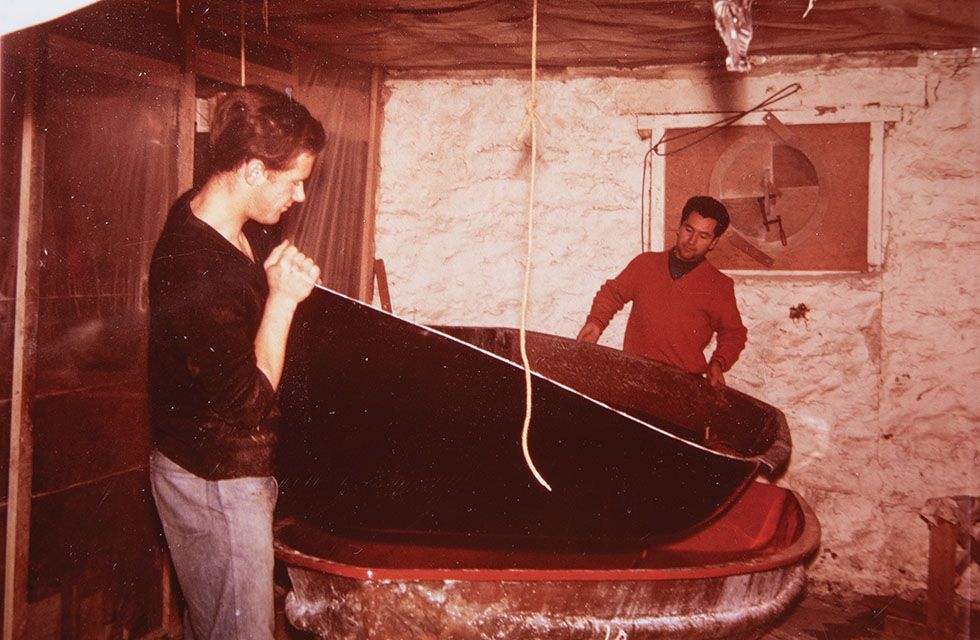 Vandestadt and his wife, Siebea, relocated from Oakville, and Hubert and Fraser got to work in the Vandestadt basement. “The very first job we did with fibreglass, the fumes from the styrene and polyester resin drifted up the stairs where my wife was baking an apple pie. The pie stank and we had to throw it out,” Vandestadt remembers. But the men saw a profitable future in fibreglass boats, so the decision was made to convert the stables of a barn on the Vandestadt property into a workshop.