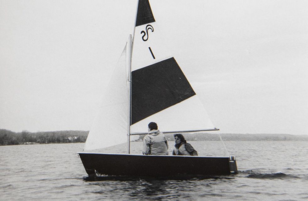In 1963 V&M started building the Spindrift 13, a dinghy made of marine plywood. They built it complete and in kit form, and at the Toronto boat show that year the little sailboat sold. It was the boost the men needed to quit their day jobs and focus on building, ultimately building 800 Spindrift. Their next project and first fibreglass boat was the 11-foot Skunk (1968), and the company delivered about 1,200 of them. (Its little sister, the 9.5- foot Shrimp, would follow years later.) “The Skunk was a success because people could sail it, fish from it, put a motor on it, row it, and it was unsinkable,” says Vandestadt.