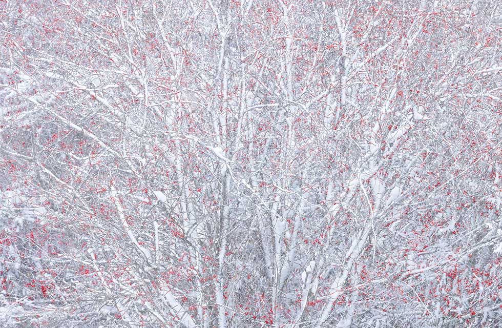 His winning entry, ‘Winter Cottonwoods’ has an interesting story: When Covid hit, Andrew put down his camera for a bit, but then decided to go downtown during a fierce snowstorm in order to do some street photography. “I was shocked when I got to the heart of the city. Storefronts were boarded up and there was no one in sight. The scene looked post-apocalyptic. I decided to go home, but stopped in at Cherry Beach. I ran across this scene, which seemed very chaotic with many interwoven trees. I loved how the snow, driven by the high winds, got embedded in the bark of the tree trunks. I took a few frames, trying to simplify the scene in front of me and settled on this one, loving the tones, the depth and the minimalism.”