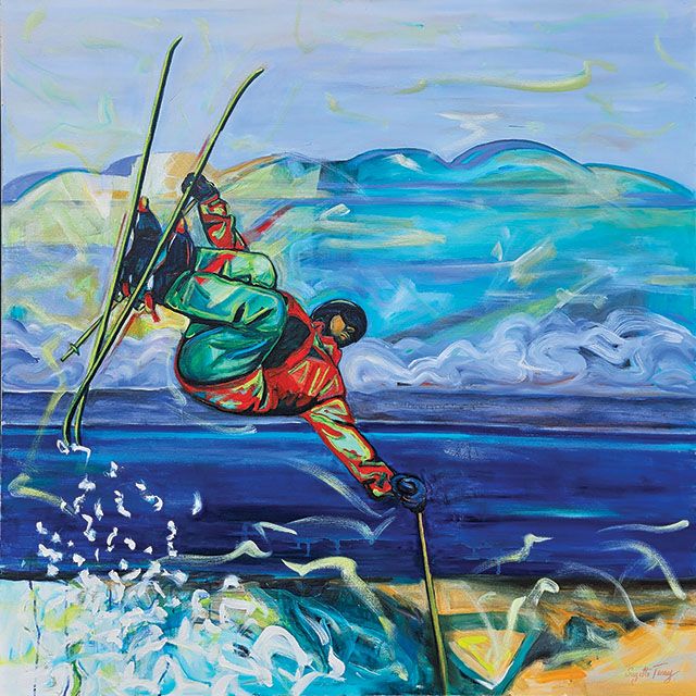 “I always try to have people feel the movement and action of skiing—or simply the magic of the mountain,” she says. Her recent collaboration with Ferréol Skis, transforming skis into painted canvases, bridges sport and art in striking new ways. Now represented at Mountainside Gallery in Collingwood, Sylvie continues to bring warmth and vitality to the coldest season— each brushstroke a reminder of why we chase winter in the first place. sylviemercier-artistepeintre.com