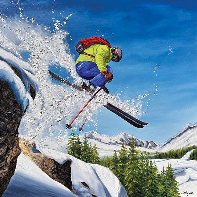 Montreal-born Sylvie Mercier discovered her gift early—winning her first art prize at sixteen and never looking back. Oil paint is her language; colour and motion, her muse. Her energetic skier portraits and vivid winter landscapes have found audiences across North America and even across the pond, in Europe.