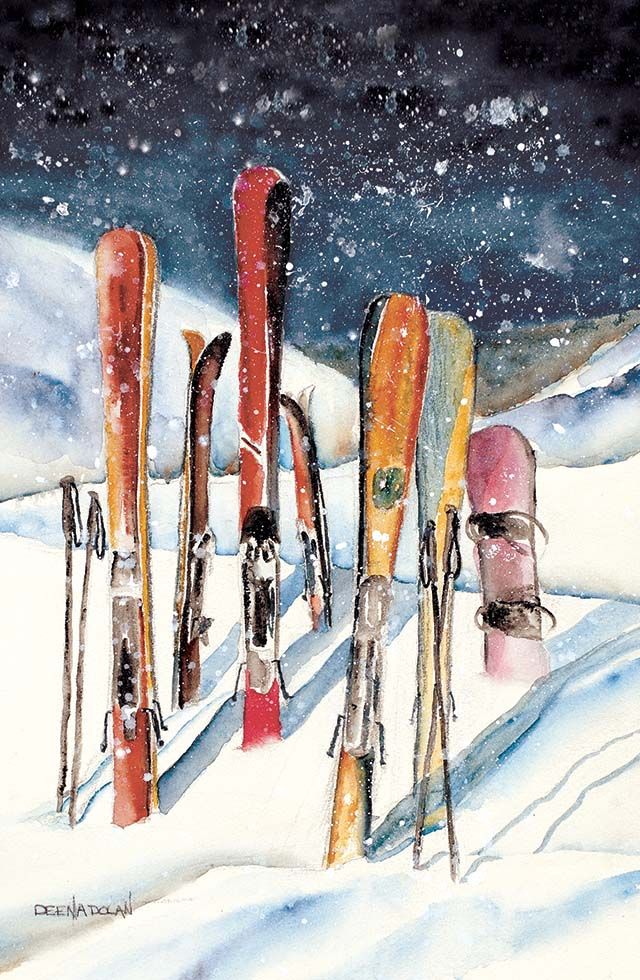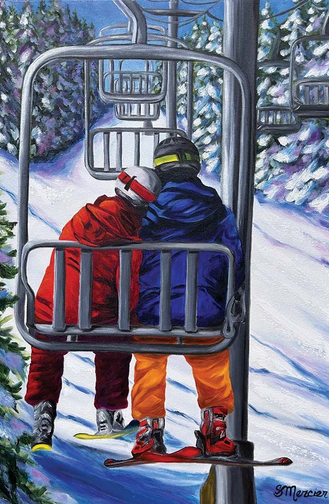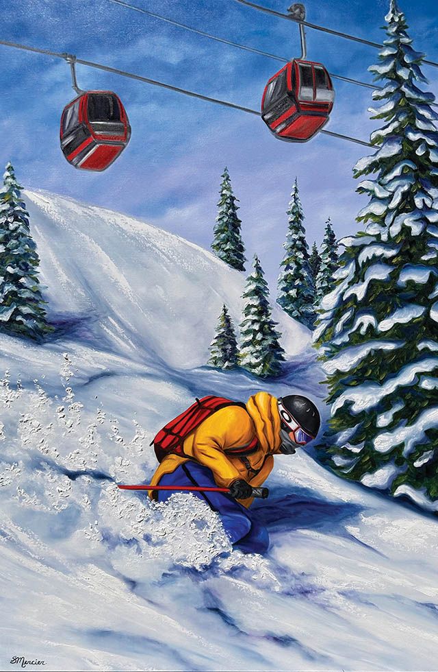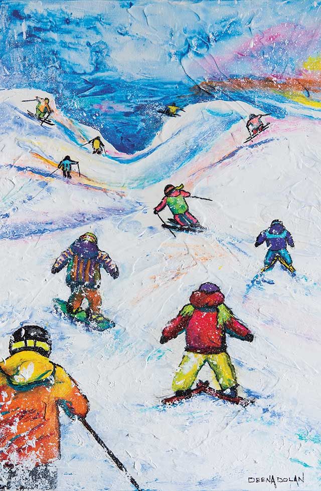 A selection of Lisa’s ski and landscape works is currently on display at Georgian Peaks Club, with more available at lisamcstayart.com. “I hope my paintings bring out that feeling of being fully present and in the zone,” she says, “that sweet spot where skiing feels both exciting and peaceful at the same time.” lisamcstayart.com